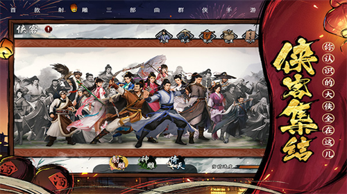 1、武学研习体系:每名侠客可解锁12种武学套路,通过经脉加点实现技能组合变异,例如郭靖的降龙十八掌可衍生出范围打击或单体爆发不同流派