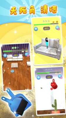 采用物理引擎模拟灰尘堆积效果,不同材质的家具需选用对应清洁工具,真实还原擦洗、抛光、除霉等工序。