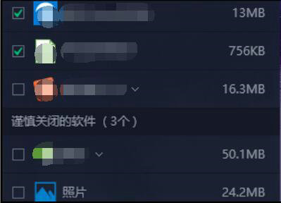 2. 在进程管理界面,勾选非必要应用程序进程