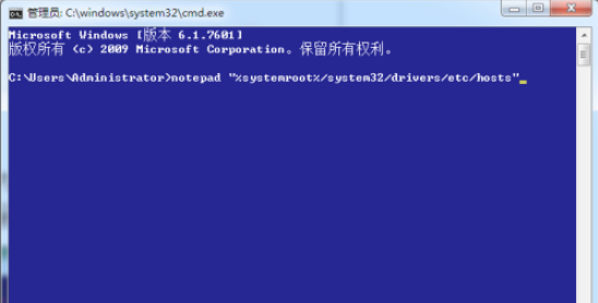② 输入命令:notepad "%systemroot%/system32/drivers/etc/hosts"